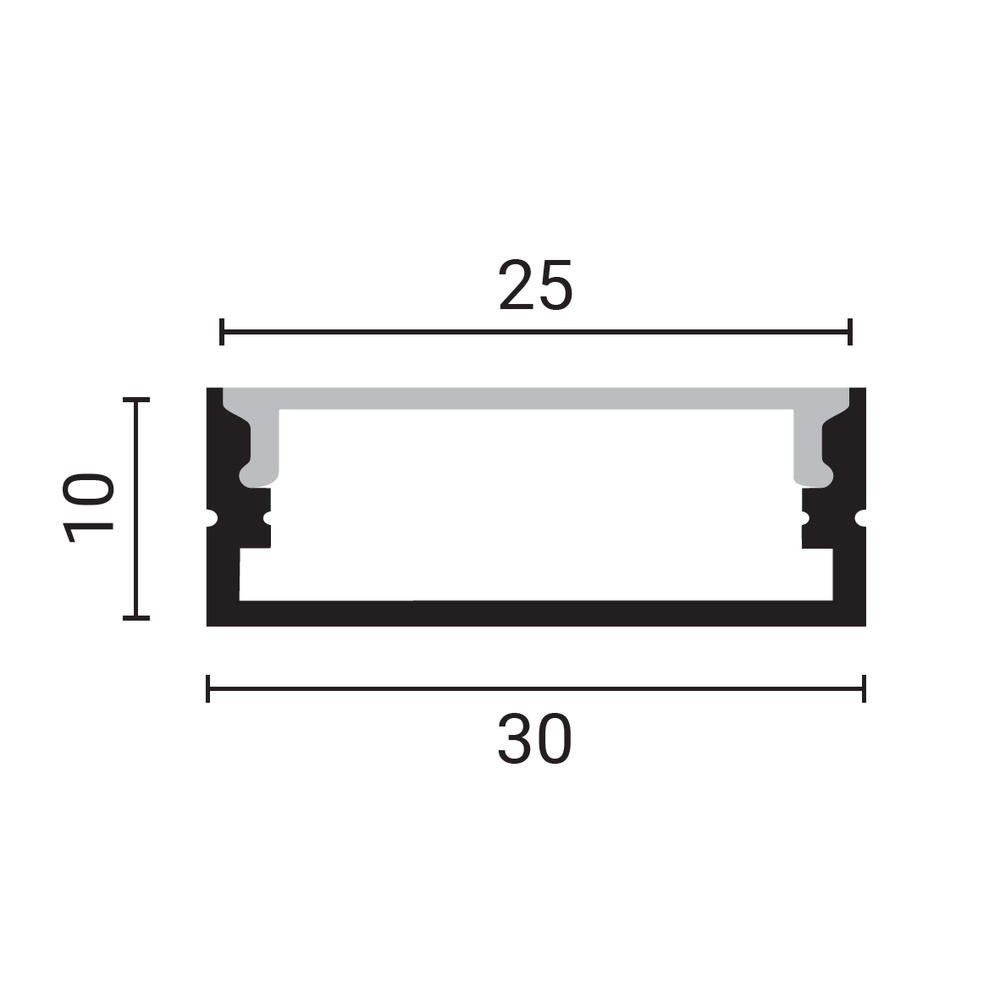 Profil aluminiu banda LED corp negru/dispersor negru L=2m 30x10mm